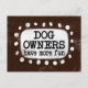 "Dog Owners Have More Fun" is a cute text design in brown with black text, along with a white accent shape and white textured whimsical dots surrounding it.