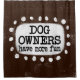"Dog Owners Have More Fun" is a cute text design in brown with black text, along with a white accent shape and white textured whimsical dots surrounding it.