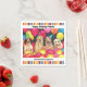 Dog birthday party paper supplies. Four cute dogs sit wearing party hats and are surrounded by colourful balloons and a red, yellow, orange and blue striped border. Happy Birthday - Let's Get This Paw-ty Started - fun, birthday party decorations paper goods for a dog lover. Personalise with their name for a special touch.
