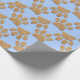 Cute cartoon style dog paw print with burlap texture. Custom wrapping paper rolls.. Little blue background.