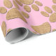 Cute cartoon style dog paw print with burlap texture. Custom wrapping paper rolls.. Little pink background.