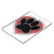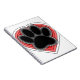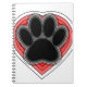 A cartoon style dog paw print in a red heart with outlines in black. Original design for people that love dogs.