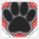 A cartoon style dog paw print in a red heart with outlines in black. Original design for people that love dogs.