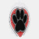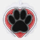A cartoon style dog paw print in a red heart with outlines in black. Custom paper ornaments. Original design for people that love dogs.