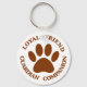 A dog paw print with distressed effect. Text and and drawing in brown.