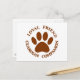 A dog paw print with distressed effect. Text and and drawing in brown.
