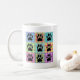 A colourful dog pattern quilt. Stripes and squares in many colours. All digital image. Custom coffee mugs for people that love dogs. Gift idea.
