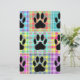 A colourful dog pattern quilt. Stripes and squares in many colours. All digital image.