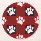 Dog Paw Print Buffalo Plaid In Black and Red Round Paper Coaster