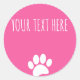 Dog Paw Print Custom Text Pink Classic Round Sticker