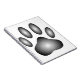 A dog paw print formed by black and whited dots. Original cartoon style design.