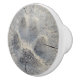 This drawer pull or knob is decorated with a photograph of a dog's paw print. The track was left in the mud of a dirt road. The mud then began t dry, leaving cracks in the mud.