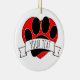 Dog Paw Print Red Heart Banner Ceramic Ornament