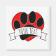 Cute cartoon style dog paw print, red heart and banner. Custom magnets.