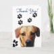Thank You card with with dog face and paw prints. Customisable greeting card template.