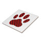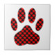 Dog paw print with heart pattern. Original drawing in red and black. Custom square ceramic tiles. Unique gift idea.