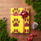 Dog Paw Print With Hearts Yellow Wrapping Paper