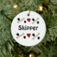 Customise with your dogs name. Cute black paw prints, bones and red hearts accent this fun decoration.
