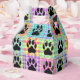 Cute dog paw print in square. Faux quilt print. Custom white favour boxes. Dog party decor idea.