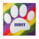 Dog Pawprint Rainbow Watercolor Custom Name Ceramic Tile