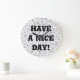 Purchased this online and it got delivered quickly. It was a present for my Dads 70th birthday. He loves clocks so decided to get him one with something written on it. Battery went in and it started working straight away. Dads had no issues with it. Printing was just how it came up online.