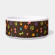 colourful and fun dog bowl with dog paws and bones.