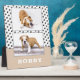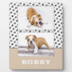Dog Pet Paw Print 2 Photo Collage Keepsake plaque. The plaque has 2 photos and the dog`s name. Modern black paw print pattern. Add your dog`s or any other pet`s photos and name. A great keepsake for a dog owner.