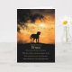 A personalized sympathy card for a dog owner, adorned with the dog's name, showcasing a silhouetted dog with birds in flight against a warm sunset backdrop, and paired with a heartfelt poem.