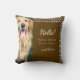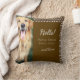 Add a fun touch to your home decor with this custom throw pillow that features a photo of your best pal and the names of your family members. This pillow has a warm dark brown background with a side pattern of white polka dots. This pillow also works well as a custom gift for a family with a new dog or cat! The throw pillow would also be a cute personalised birthday, bridal shower, wedding, housewarming, Christmas, or other holiday gift.