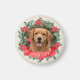 Dog Photo and Name Poinsettia Wreath Holiday Gift Magnet