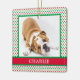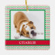 This adorable Christmas ornament with your dog's photo and name on white with red and green polka dots would be so cute on your tree. It also makes a great gift! Get a couple for your dog loving friends and family.