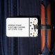 Pet photo luggage tag you can personalise with a photo of your darling dog. A luggage tag with a dog themed pattern with paws, bones, and balls. Add your initials in white against a black paw print and, on the back, your name and address.