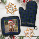 Dog Photo Personalised Modern Rustic Holiday Plaid Oven Mitt & Pot Holder Set