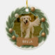 Dog Photo Wreath Custom Name Holiday Christmas Ceramic Ornament
