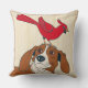 Dog Pillow with Red Bird on Nose – Cute Animal Thr