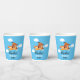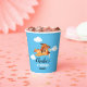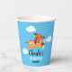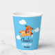 Dog Pilot Flying Aeroplane, Cute Fun Kids Blue Birthday paper cup.
