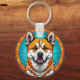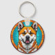 Dog Portrait with Mosaic-Inspired Background Key Ring