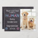 Congratulations! Let your best dog and newly appointed guard dog announce your pregnancy and the news of his new best friend with this adorable dog pregnancy announcement card. “Mum and Dad are getting us a Human...Baby Last Name …Your Month/Date 20xx. Send to family and friends for the cutest pregnancy announcement. COPYRIGHT © 2020 Judy Burrows, Black Dog Art - All Rights Reserved. Dog Pregnancy Announcement