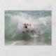 Dog Running through Ocean Wave, Surf, Beach Postcard