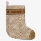 Personalise this rustic brown burlap and lace Christmas stocking for a modern, trendy holiday look and the perfect place to hide your holiday treats for your puppy dog.