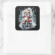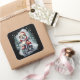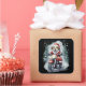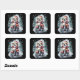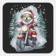 This sticker features a cheerful dog dressed as Santa Claus riding a red motorcycle through a snowy forest. The dog wears glasses and a Santa suit and is set against a black background. Snow-covered pine trees are visible, emphasizing the winter setting. The design may look real due to the high detail and three-dimensional texture in the artwork.