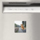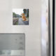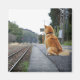 Dog sitting on train station magnet