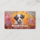 A colourful oil painting of a cute & adorable puppy. This is a business card for people that walk dogs or pet sit.