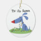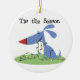 An adorable holiday keepsake ornament featuring a blue puppy dog with a string of tree lights and text that reads "Tis the Season"!