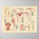 Dog anatomical chart shows the vascular system. Lateral view showing the blood vessels and heart. The kidneys with arteries and veins. The poster is labelled with descriptions.