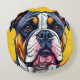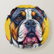 Vibrant artwork showcasing a meticulously drawn dog portrait framed within a circular border, expressing loyalty and elegance in a rustic yet modern style with detailed fur and expressive eyes.