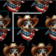 A Blue Heeler portrayed as a cowboy wearing a leather hat paired stylishly with a USA-flag bandanna, embodying American pride and themed charm.