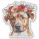 Cute Dog Wearing Flower Wreath on its Head Valentine Sticker. Great for Valentines Day or any occasion. Adorable scrapbook craft or cards. Or you just love stickers and enjoy placing them everywhere.