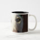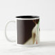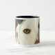 Dog wearing reindeer antlers Two-Tone coffee mug