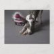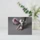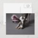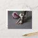 Dog with diva bowl, sniffing floor postcard